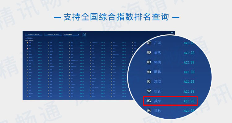 2、大氣網格化精準監測系統:實現根據不同區域用戶登錄而展示不同信息,實現當前城市市內年年累計綜合指數排名、區域綜合指數排名統計展示;
