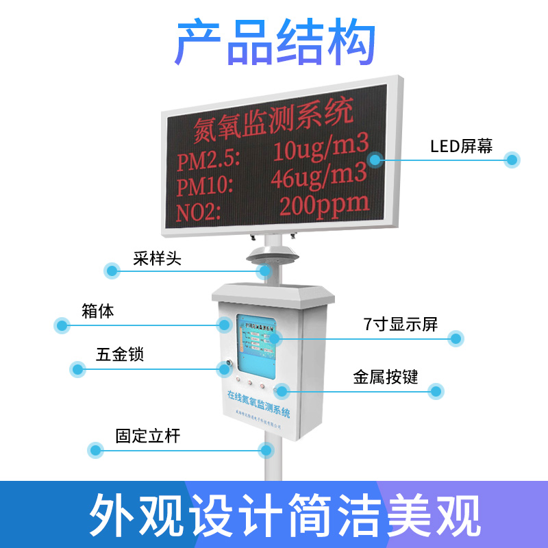 2、氮氧化物監測系統清晰液晶屏顯示七寸液晶屏顯示,讀數方便,一目了然。支持RS485/2G/4G多種通訊方式,無需數采儀直接上傳云平臺。