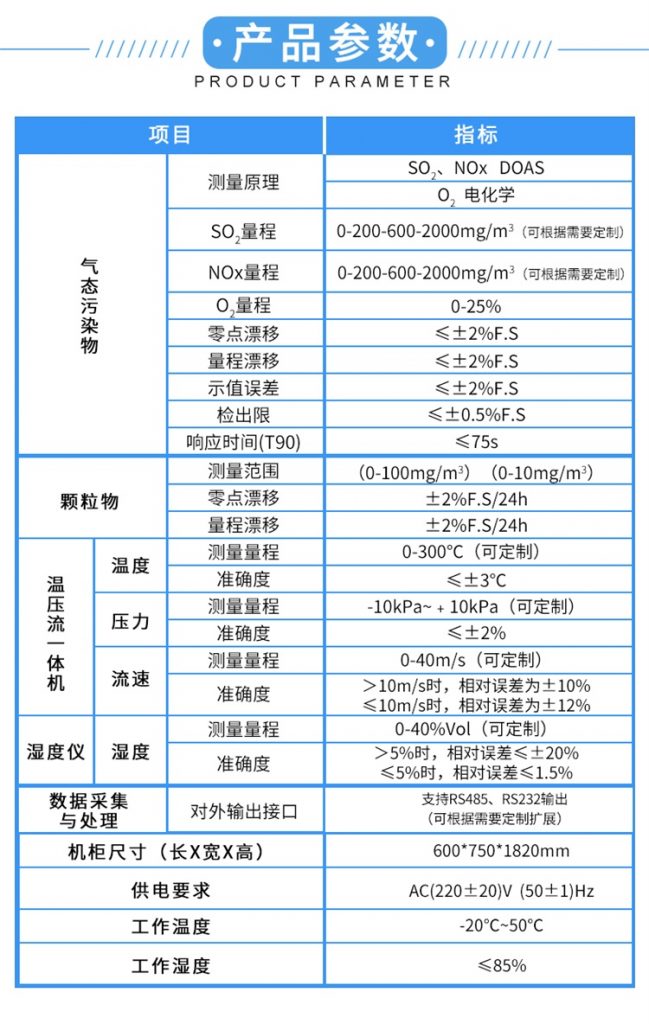 先進的DOAS (紫外差分吸收光譜)技術,避免了幾種排放源對測量的干擾,能實時在線、多氣體成分同時監測。