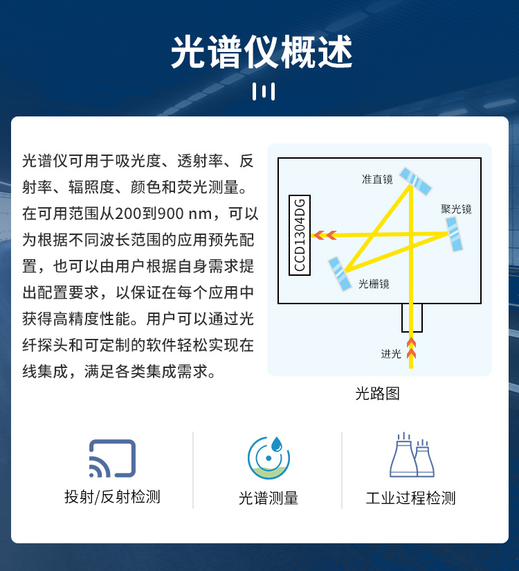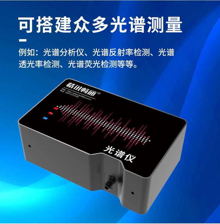 光譜儀是精訊暢通自主研發的用于測量吸光度、透射率、反射率、輻照度、顏色和熒光的分析儀器。拉曼光譜分析儀在可用范圍從200到900nm,可以為根據不同波長范圍的應用預先配置,也可以由用戶根據自身需求提出配置要求,以保證在每個應用中獲得高精度性能。光譜儀可廣泛應用于DOAS、氣體監測分析、LED測量、發射光譜測量、紫外/可 見吸收光譜測量等等。