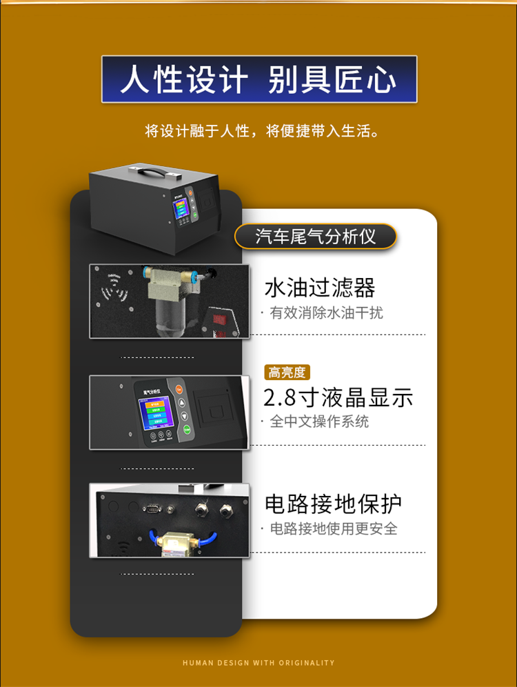 傳感器內部帶有高精度放大、去噪聲處理、溫度補償處理,出廠前經標準氣體標定處理,保證尾氣分析儀測得準確的氣體濃度信息。配有嵌入型熱敏打印機,打印尾氣分析數據。將設計融于人性,將便捷帶入生活。