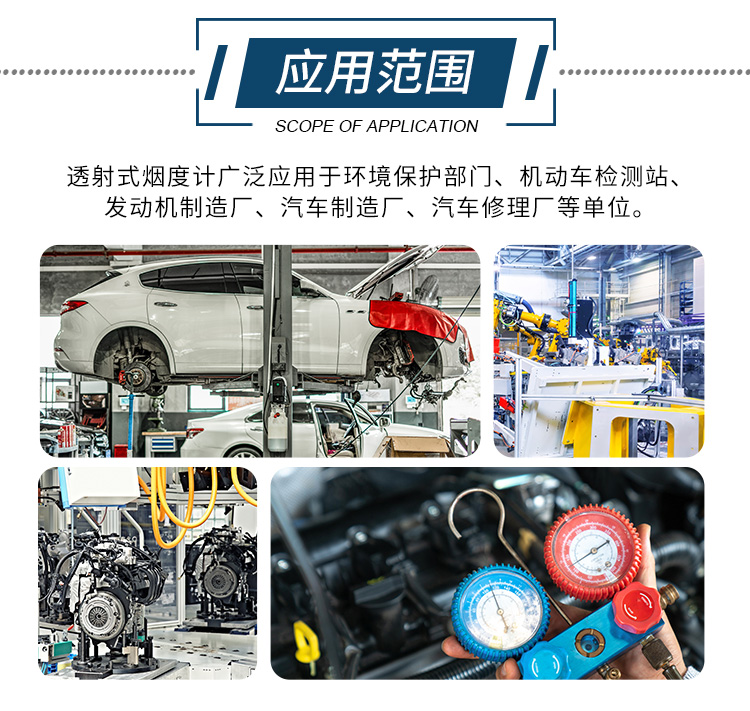 透射式煙度計可以廣泛應用于環境保護部門、機動車檢測站、發動機制造廠、汽車制造廠、汽車修理廠等單位。