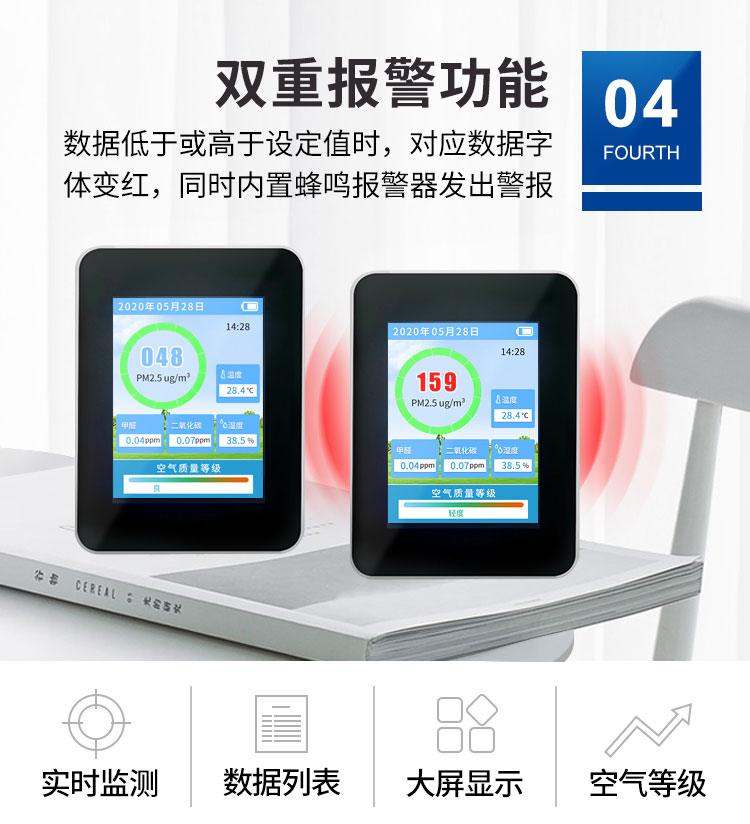 空氣質(zhì)量監(jiān)控器:實時監(jiān)控整個系統(tǒng)的狀態(tài),提供歷史數(shù)據(jù)曲線,數(shù)據(jù)存儲。