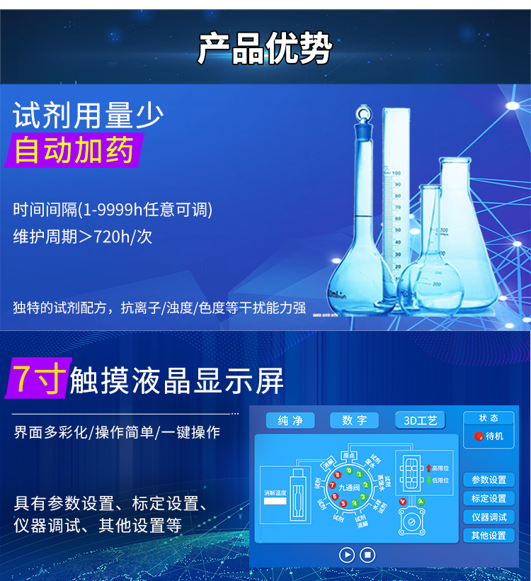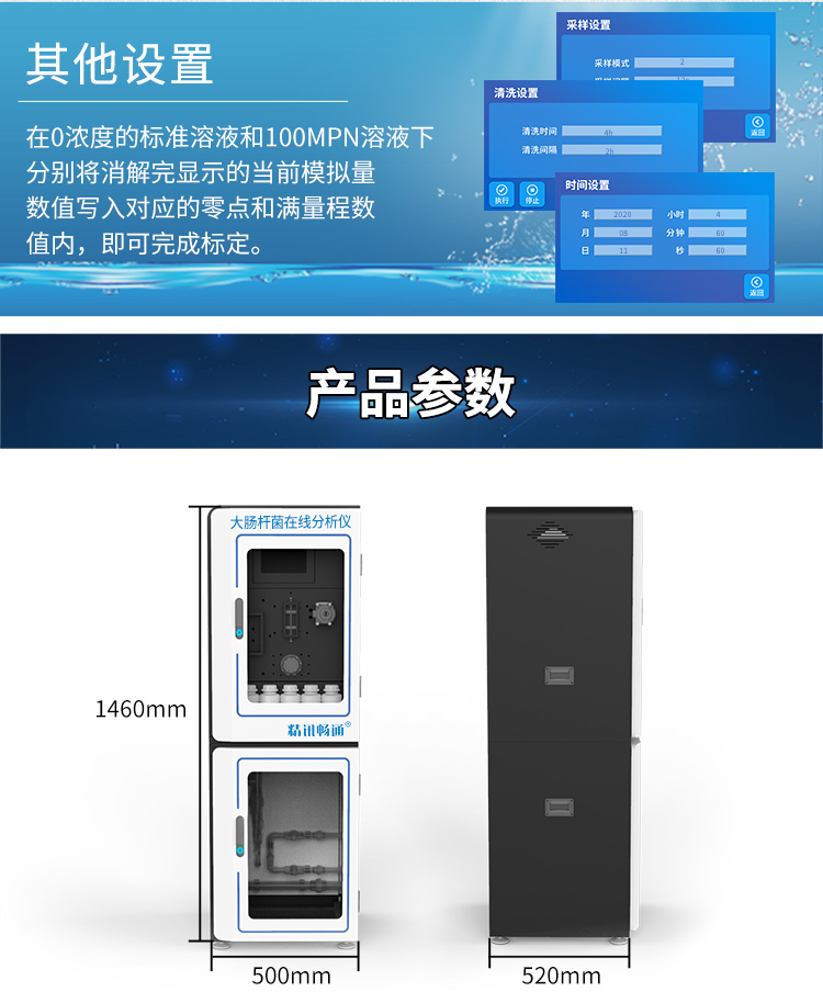 精訊暢通公司根據酶底物法檢測原理,開發了一款專門用于檢測水中大腸桿菌的儀器,這就是大腸桿菌檢測儀。這款儀器在檢測時能夠自動添加試劑,而且試劑的使用量較少,維護的周期也相對較長。它的界面設計得十分人性化,配備了7寸觸摸液晶顯示屏,色彩豐富,操作起來十分簡便,一鍵就能完成。此外,它還能自動清洗采樣管道、計量單位、消解反應單位和測量單元的管線。因此,大腸桿菌在線分析儀在多個領域都得到了廣泛應用,如醫院污水處理、飲用水水源地監測、地表水檢測、水質自動監測站以及污水處理廠出水口的環境污染源在線監測等方面,都發揮了重要的作用。