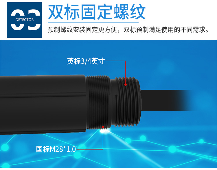 3、雙標固定螺紋:預制螺紋安裝固定更方便,雙標預制滿足使用的不同需求。