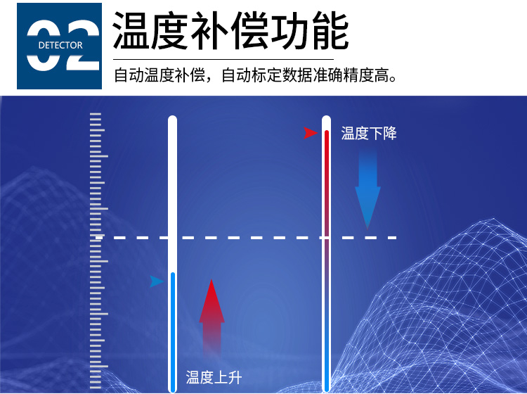 2、溫度補償功能:自動溫度補償,自動標定數據準確精度高。