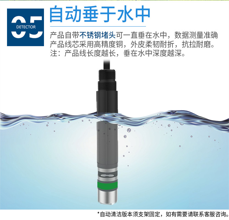 4、自動垂于水中:產品自帶不銹鋼堵頭可一直垂在水中,數據測量準確產品線芯采用高精度銅,外皮柔韌耐折,抗拉耐磨。產品線長度越長,垂在水中深度越深。