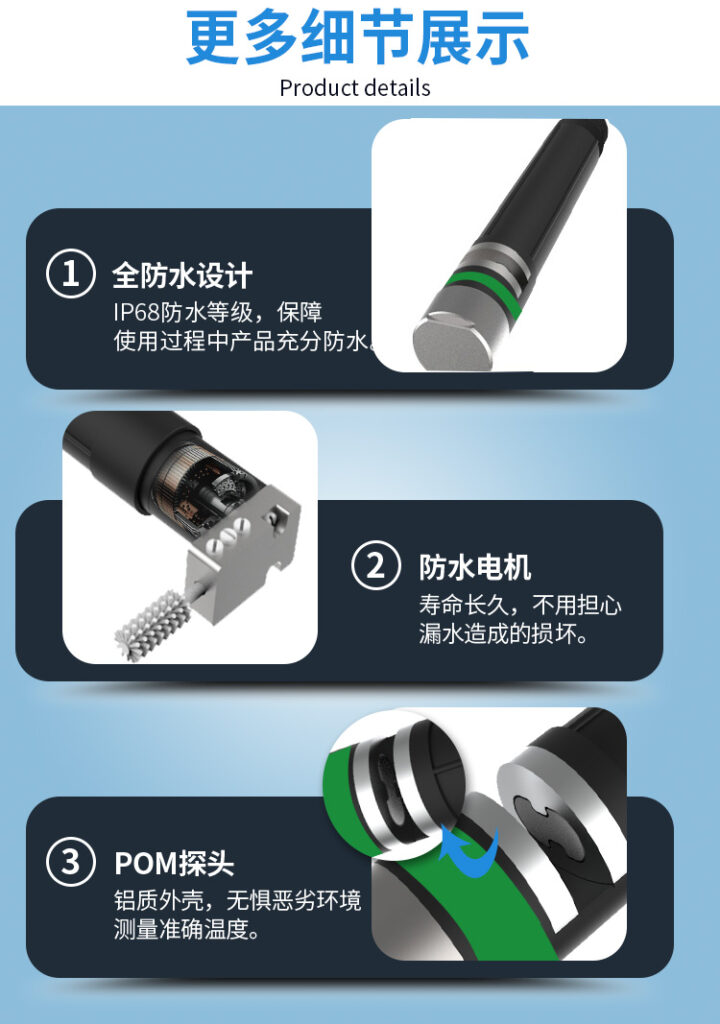 1、全防水設計:IP68防水等級,保障使用過程中產品充分防水。