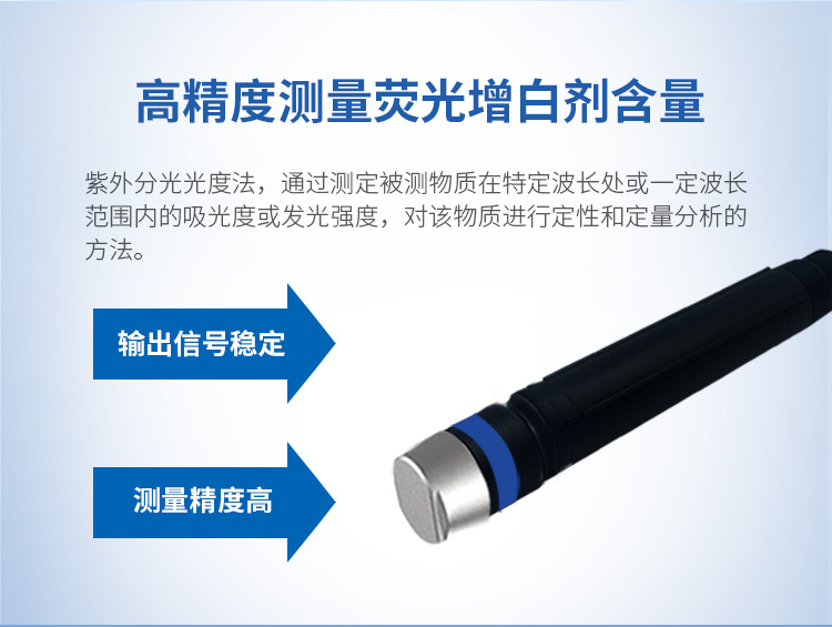 水質熒光增白劑檢測儀使精訊暢通采用紫外分光光度法來檢測水中熒光劑含量的一款水質分析儀。水質熒光劑傳感器輸出信號穩定,測量精度高,可滿足不同用戶的多種需求。產品線有兩種可選,一種是內置鋼絲網材質,一種是普通材質,產品線芯采用高精度銅,外皮柔韌耐折,抗拉耐磨。廣泛應用于各種行業(工 業廢水、城市污水、生活污水及江湖流域地表水)廢水的檢測。