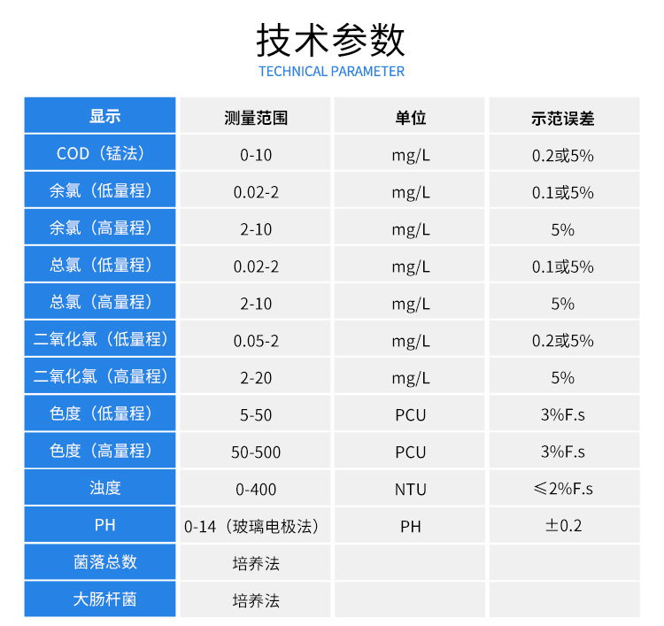 色度(低量程):5-50PCU