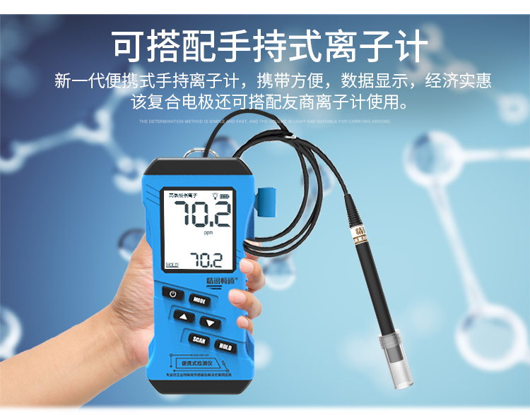 便攜式高氯酸根離子傳感器是精訊暢通自主研發的一款為測量水溶液中高氯酸根離子(ClO4-)而設計的水質在線監測設備。具有測量快速、精確,操作簡易等特點。可以搭配手持離子計,數據顯示更加直觀。廠家直銷,支持定制,可以更好的滿足不同客戶額具體需求,歡迎前來咨詢。