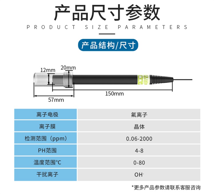 便攜式氟離子傳感器全身采用防水的設計,可以很好的進行水質在線監測。具有被測溶液樣品用量比較少、可以同時測量物體表面的離子量,參比電極無需添加電解質液。液接界電位穩定、安裝方便、電極性能穩定,使用方便等特點。