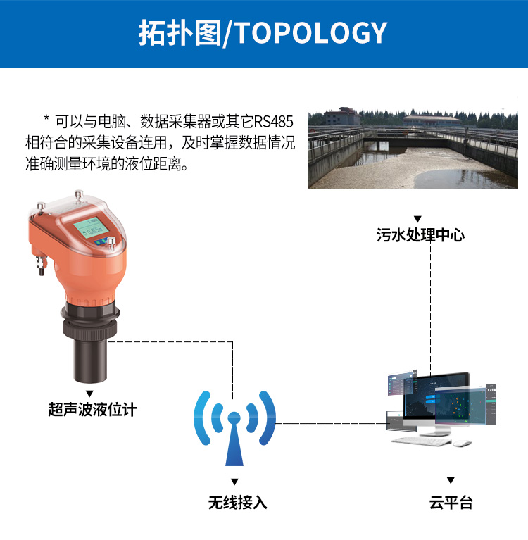 2、清水水位測量:江河湖泊水位及路面積水測量,需求十分普遍。液位數據不僅要可靠,還能聯網上傳便于實時監控,超聲波液位具有RS485功能有效滿足您的需求。