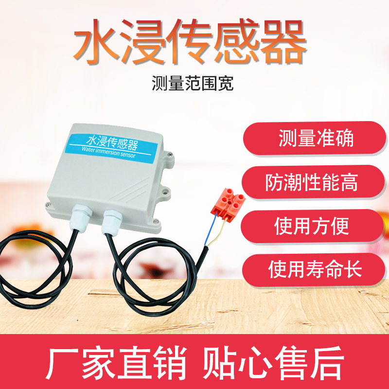 漏水監測傳感器為全密封設計,保證了水浸傳感器的精度和可靠性,水浸傳感器靈敏度高,響應時間快,使用方便,易于安裝。漏水傳感器是一款非常重要的水監測設備,當漏水的時候,水檢漏裝置會自動報警。
