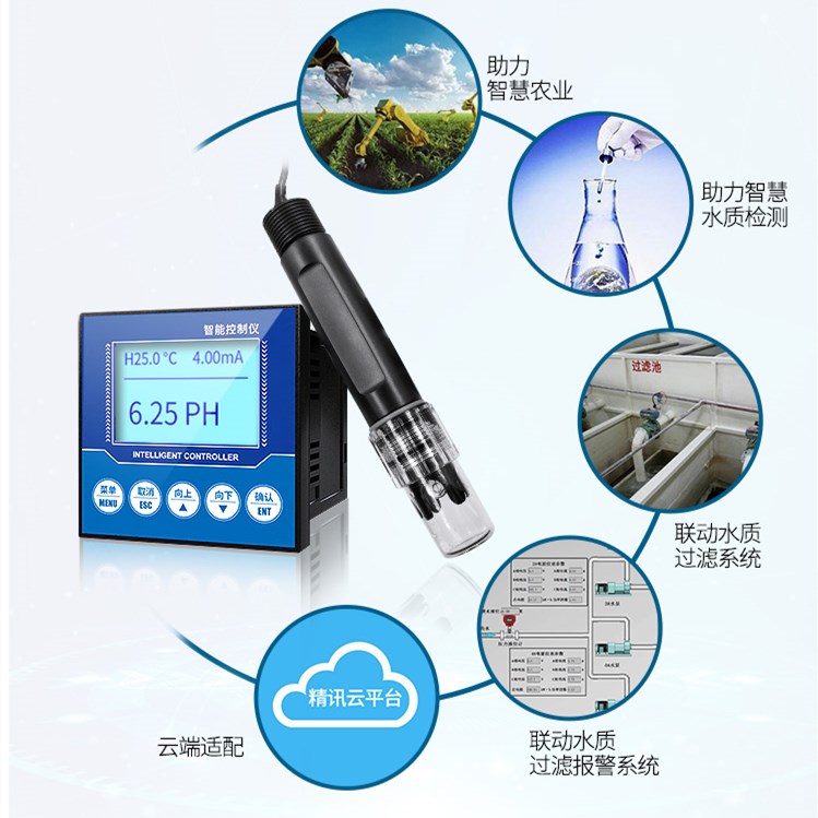 精訊暢通自主研發水質PH傳感器,水質PH檢測儀是一款智能在線水質監測儀器之一,水質PH傳感器,用來檢測被測物中氫離子濃度并轉換成相應的可用輸出信號的傳感器,其通常由化學部分和信號傳輸部分構成。PH傳感器常用來進行對溶液、水等物質的工業測量。