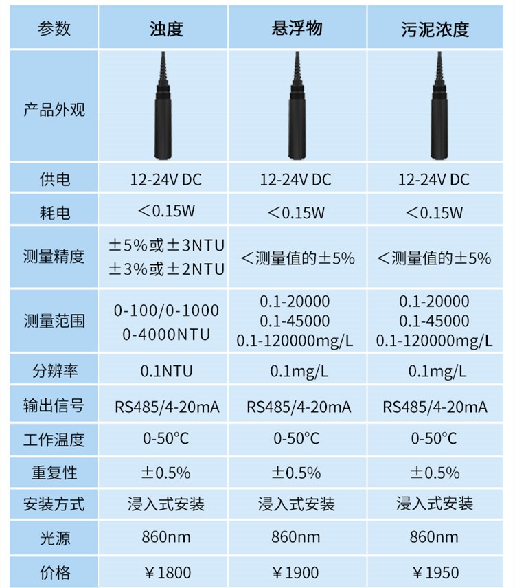 測(cè)量范圍 | 0-100/0-1000 0-4000NTU | 0.1-20000 0.1-45000 0.1-120000mg/L | 0.1-20000 0.1-45000 0.1-120000mg/L |
