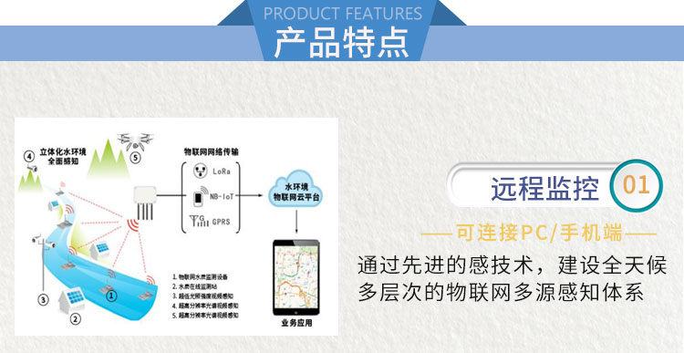 浮漂式水質(zhì)監(jiān)測(cè)系統(tǒng)借助傳感器技術(shù),結(jié)合了浮標(biāo)體、電源供電系統(tǒng)和數(shù)據(jù)傳輸設(shè)備,構(gòu)建了一個(gè)可以全天候、連續(xù)且定點(diǎn)觀測(cè)水質(zhì)的小型監(jiān)測(cè)系統(tǒng)。它能夠?qū)崟r(shí)將收集到的水質(zhì)數(shù)據(jù)傳輸至環(huán)境物聯(lián)網(wǎng)的云端。這種系統(tǒng)主要應(yīng)用于河道、湖泊及水庫(kù)等水域的水質(zhì)監(jiān)測(cè)工作,能夠自動(dòng)并實(shí)時(shí)地監(jiān)測(cè)目標(biāo)水域的水質(zhì)狀況。通過(guò)網(wǎng)格化監(jiān)測(cè)河道水質(zhì)趨勢(shì),有助于構(gòu)建完善的河道長(zhǎng)效管理機(jī)制,進(jìn)而實(shí)現(xiàn)對(duì)水域或下游水質(zhì)污染的預(yù)測(cè)和預(yù)警,從而掌握水質(zhì)和污染物的通量,有效防治水污染事故的發(fā)生。
