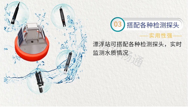 3、搭配各種檢測(cè)探頭:實(shí)用性強(qiáng),浮漂式水質(zhì)監(jiān)測(cè)站可搭配各種監(jiān)測(cè)探頭,實(shí)時(shí)監(jiān)測(cè)水質(zhì)情況。