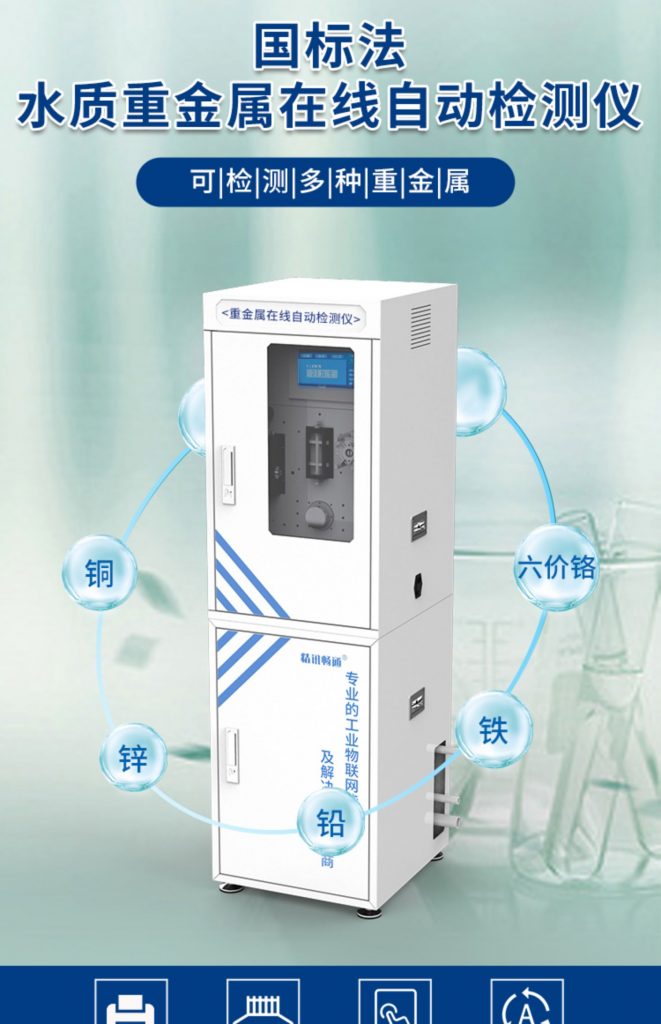 水質重金屬在線分析儀是一款采用分光光度法檢測水中多種重金屬含量的水質監測設備。水質重金屬在線分析儀具有獨特的試劑配方,測量結果準確,采用分光光度法測試各離子的吸光度來檢出水樣中重金屬離子的濃度,可檢測水中鐵、六價鉻、錳、銅、鋅、鉛、鎳、鋁等重金屬離子的含量。該水質重金屬檢測儀可廣泛應用于企業污水、生活污水、地表水、科研院所、造紙印刷冶煉鋼鐵等領域。